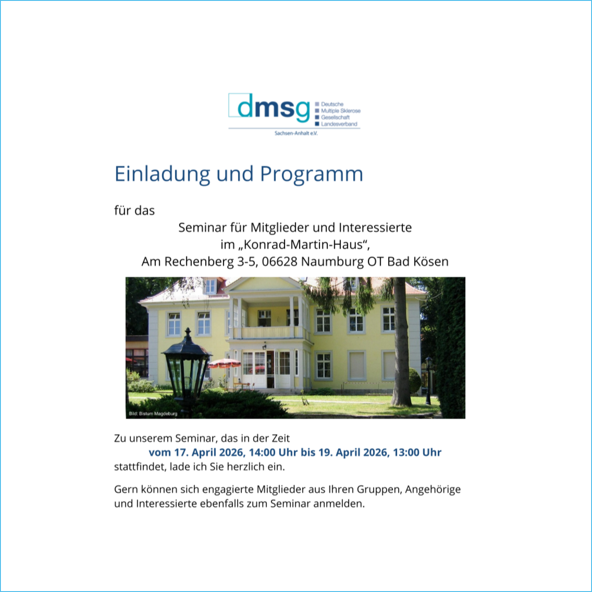 Unser Frühjahrsseminar findet im April im Konrad-Martin-Haus in Bad Kösen statt ...Der Landesverband